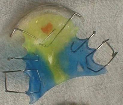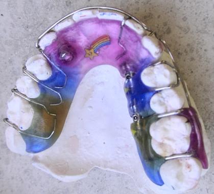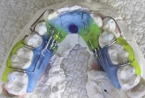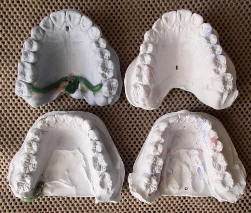 Eine Anwendung von Dehnplatten brachte bereits eine sichtbare und spürbare Verbreiterung von 5 mm in beiden Zahnbögen. Weil die Platten zwar regelmäßig, aber fast nur nachts getragen wurden, ging dieses „Ausbeulen“ der Zahnbögen langsam. Sie wirken bereits ansehnlich groß, aber die Expansion soll mit frischen Platten weiter ausgereizt werden.