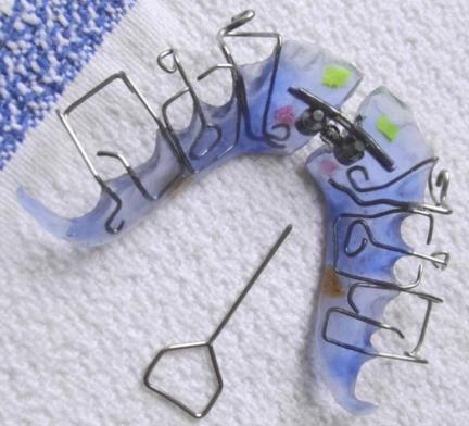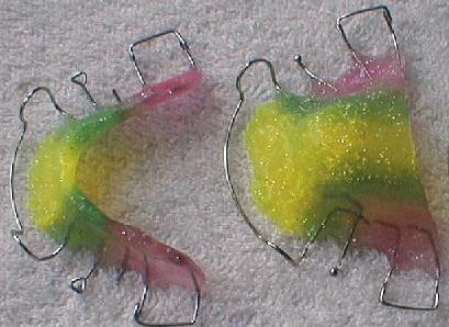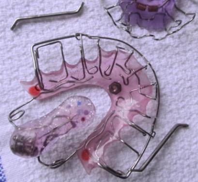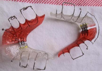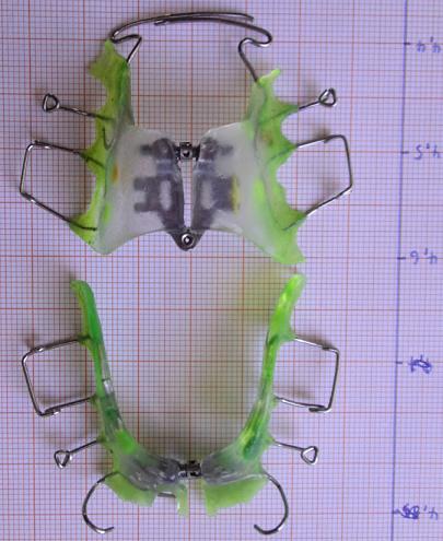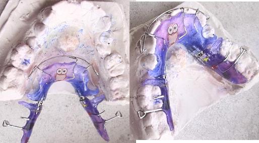 Auf Kundenwunsch (trotz Alternativen wie Schmalkiefer- oder Progenie-K3F): Platten für „Face pulling“ (wo Funktionskieferorthopädie wenig bekannt, aber Selbsthilfe ratsam ist)). |